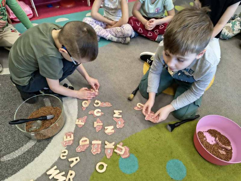 Jedną z największych atrakcji było odkopywanie szczątków dinozaurów w piasku. Mali paleontolodzy, wyposażeni w pędzelki i łopatki, z ogromną cierpliwością poszukiwali ukrytych „skamieniałości”.