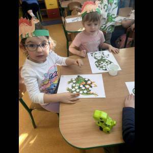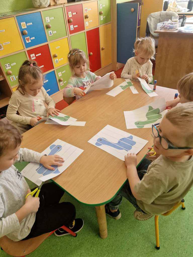 Dużym zainteresowaniem cieszyły się również prace plastyczne. Przedszkolaki tworzyły własne dinozaury z papieru, plasteliny i farb.