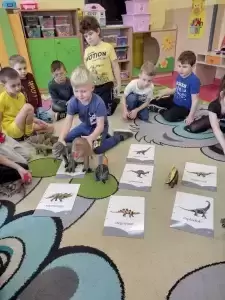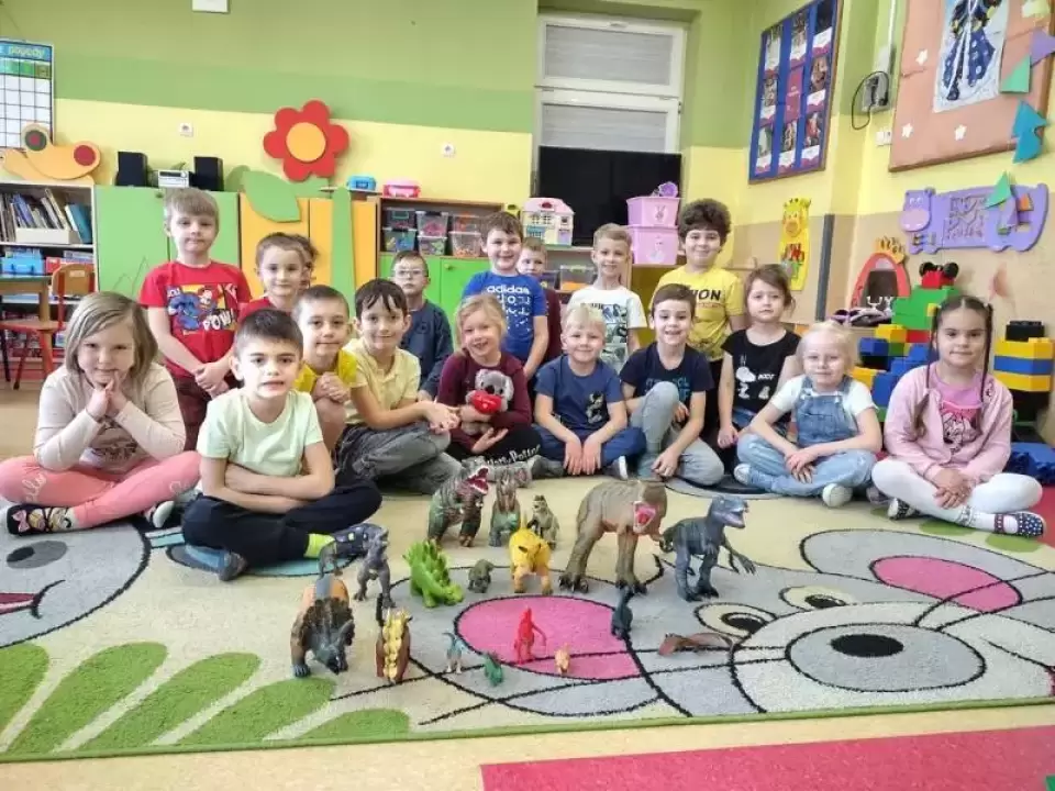 Dinozaury to stworzenia, które od dawna niezwykle fascynują szczególnie najmłodszych. Nie tylko zaskakują swoim wyglądem i wielkością, ale też kryją wiele tajemnic. Dlatego 27 lutego obchodziliśmy w naszym przedszkolu święto znanych, prehistorycznych stworzeń - Dzień Dinozaura.
