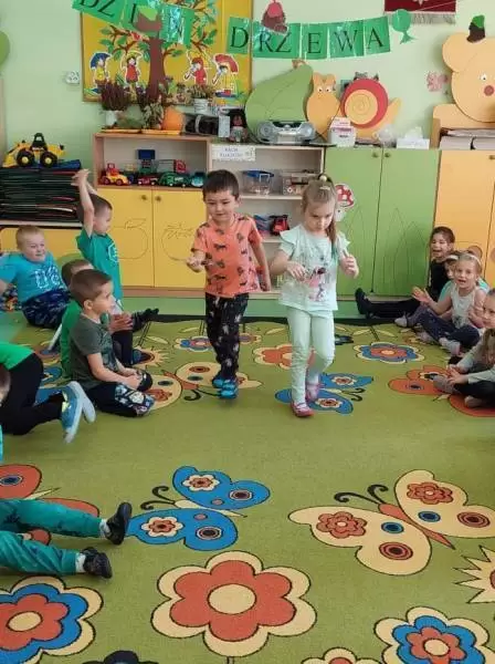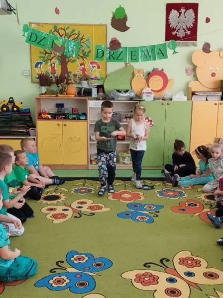 Ponadto Dzień Drzewa obfitował, także w różne zabawy i gry zręcznościowe z użyciem kasztanów i żołędzi oraz zagadki słowne i dźwiękowe na temat drzew i lasu. Dzieci mogły również tego dnia posłuchać odgłosów lasu, zobaczyć z bliska różne rodzaje drzew podczas spaceru i porównać ich wygląd.