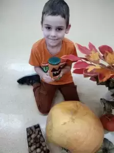 Dzieci poznały wielką różnorodność dyń i wzbogaciły wiedzę na ich temat. Dowiedziały się, że dynia jest bardzo zdrowym warzywem i, że można z niej przygotować wiele dań tj.: pieczywo, zupę, ciasto, przetwory.