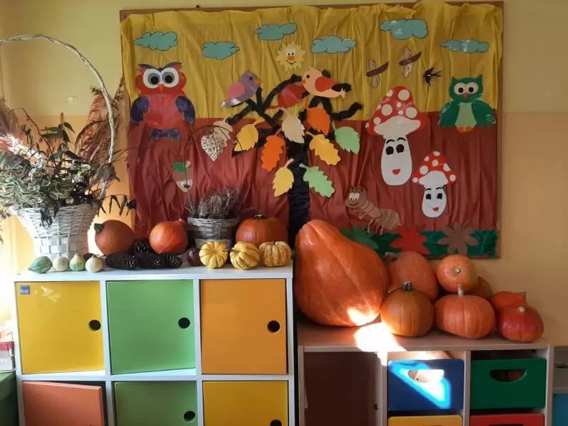 Jednogłośnie gwiazdą tegorocznej jesieni została DYNIA! Z tej okazji Przedszkole Publiczne w Ciechowie zamieniło się w dyniową krainę, w której królował kolor żółty i pomarańczowy.