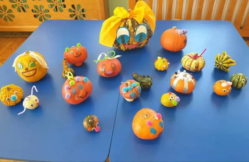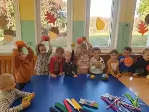 Wszyscy odkryli co dynia kryje w środku, oraz co możemy z niej zrobić. Dzieci wykonały pracę plastyczną - ozdabiały dynie na różne sposoby: malowały farbami, kredkami, wyklejały bibułą czy listkami. Na zakończenie można było zrobić sobie zdjęcie z Dyniową Fotobudką.