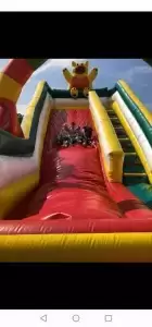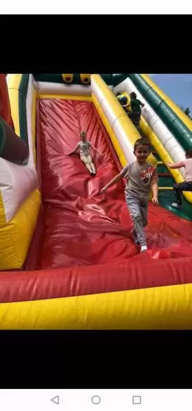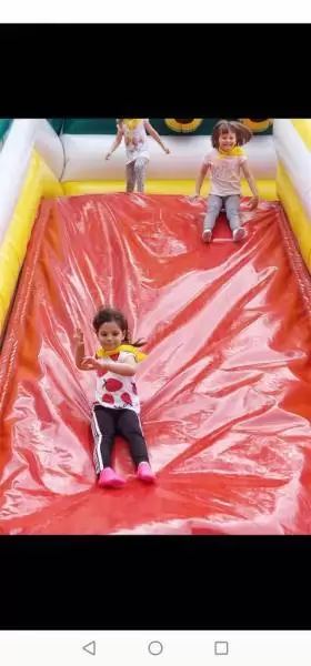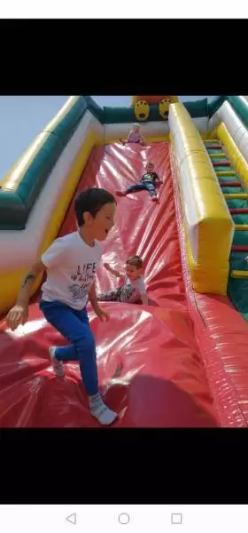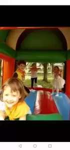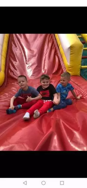 W środę natomiast dobrej zabawy był ciąg dalszy. Dmuchańce pojawiły się tym razem na naszym przedszkolnym placu, gdzie przy pięknej i słonecznej pogodzie, dzieci z ogromną przyjemnością miały możliwość zjeżdżać z nich dowoli, ciesząc się przy tym niezmiernie.