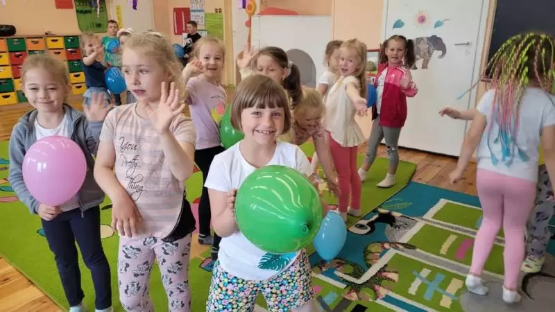 Była zabawa taneczna z balonikami, konkursy taneczne oraz zawody sportowe. Przedszkolaki wzięły udział w zajęciach plastycznych, wykonując barwne motyle. Po wesołych tańcach i pląsach dzieci przeszły na kolorowo ustrojony plac zabaw. Tam czekały na nie kolejne niespodzianki m.in. przeciąganie liny, zabawy z chustą animacyjną, rzuty do celu oraz pokaz kolorowych baniek mydlanych. Chętne dzieci miały malowane buźki.