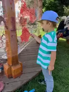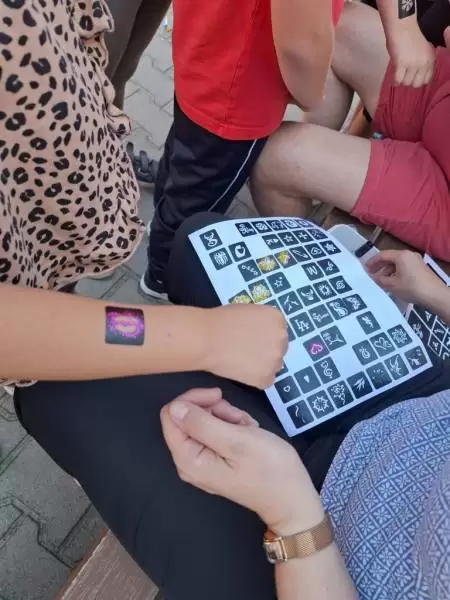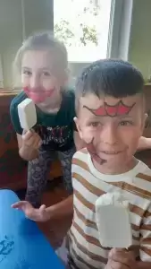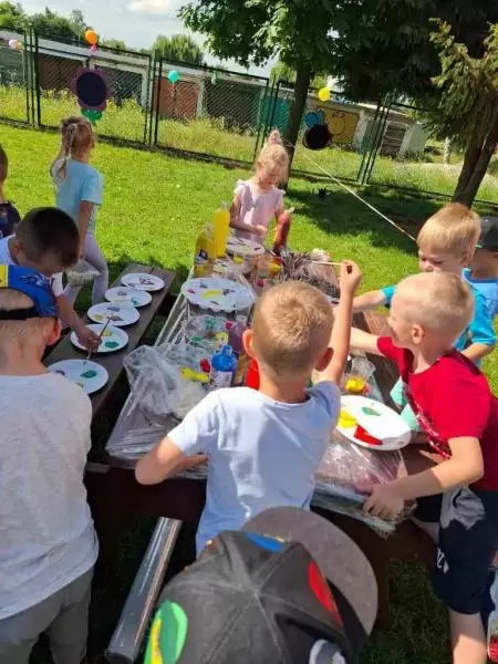 W tle słychać było największe dziecięce przeboje i nie tylko! Dzieci malowały farbami, na długich foliach rozciągniętych na placu zabaw. Do malowania twarzy i tatuaży ustawiła się długa kolejka. Tradycyjnie do wszystkich zabaw zachęcała Myszka Miki, która z uśmiechem wspólnie z dziećmi rzuciła się w wir zabawy.