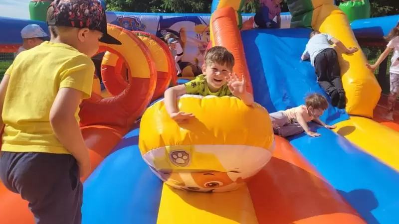 Dzień Dziecka w Przedszkolu w Ciechowie - dmuchańce i zabawy z Myszką Miki