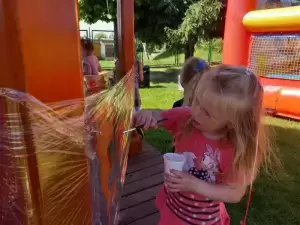 Były tańce, zabawy z Myszką Miki, upominki, lody, kolorowe dmuchańce, balony i wielkie bańki mydlane. Dziewczynki z niecierpliwością czekały na kolorowe doczepiane warkoczyki a do malowania twarzy i tatuaży ustawiła się długa kolejka. W tle słychać było największe dziecięce przeboje i nie tylko! Każdy znalazł coś dla siebie i naprawdę dużo się działo!