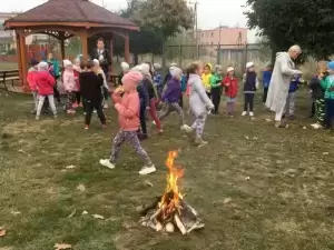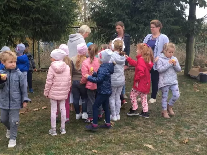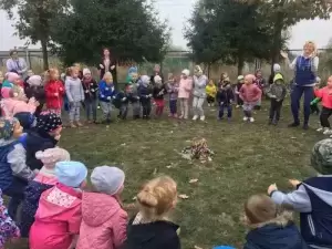 Z kolei 19 października, jak co roku, w przedszkolu zorganizowano Dzień Ziemniaka. Dzieci bawiły się i śpiewały wokół ogniska.