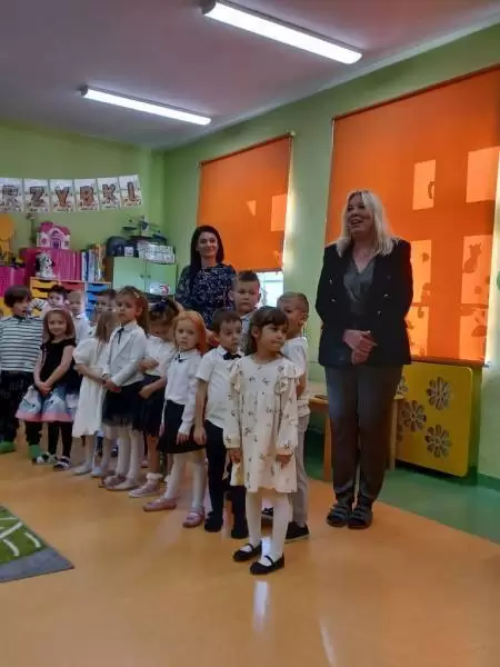 Pani Dyrektor - Bogusława Hryńczak powitała wszystkich zgromadzonych gości i złożyła serdeczne życzenia. Podkreśliła, że nauczyciel to ktoś, kto widzi w dziecku wyjątkową osobę. Podziękowała wszystkim za serdeczność i życzliwość. Powiedziała, że dzięki temu nasze przedszkole jest wyjątkowe.
