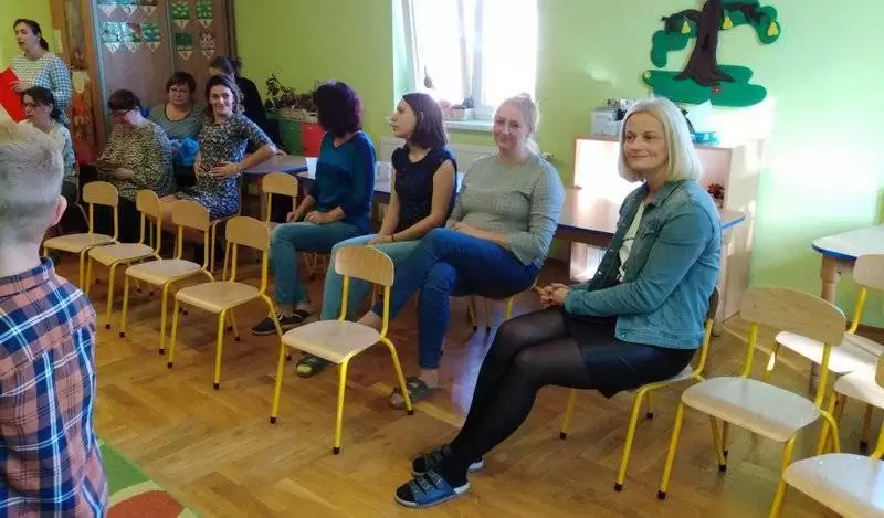 Przedwczoraj - 14 października, odpowiadając na zaproszenie dzieci, wszyscy pracownicy naszego przedszkola zebrali się w sali ,,Rybek" ... A tam niespodzianka!