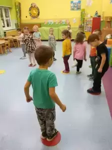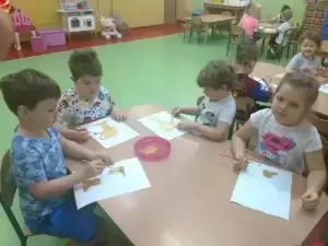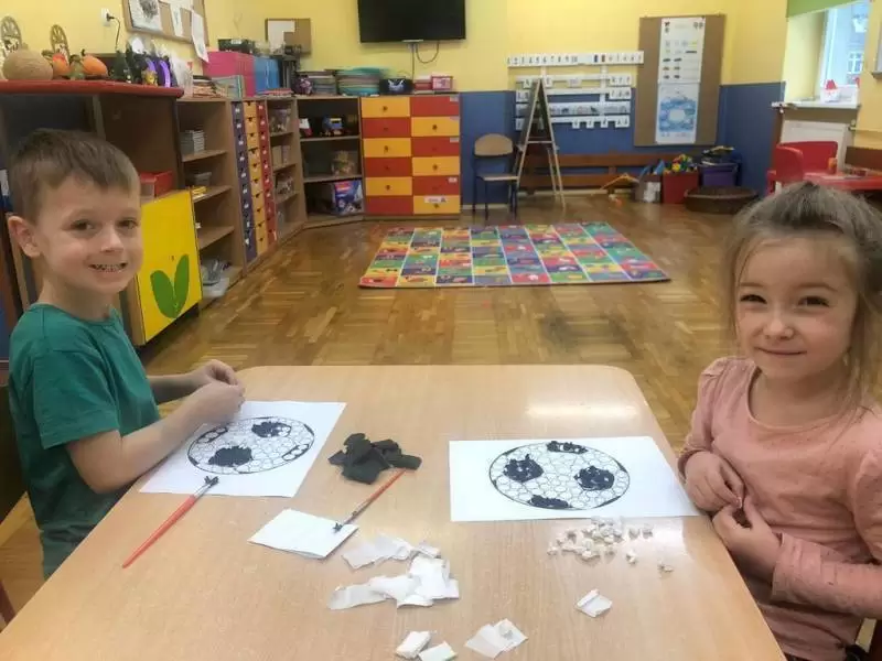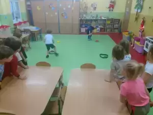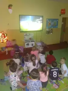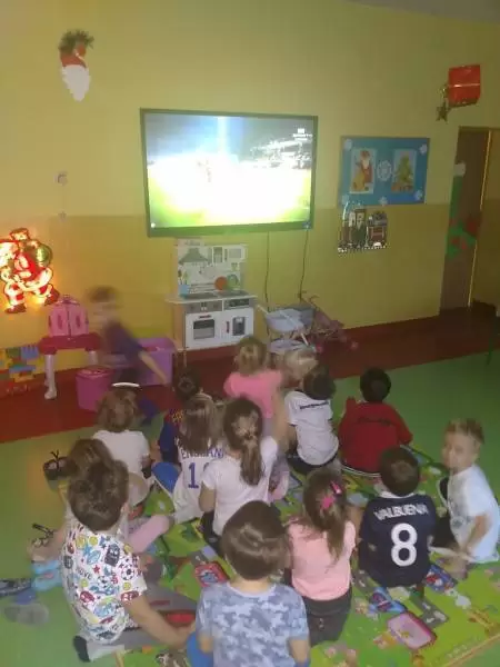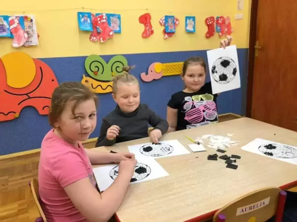 Przedszkolaki zapoznały się z sylwetkami polskiej reprezentacji w piłce nożnej, wykonały pracę plastyczną pt. "Mój puchar", "Piłka nożna". Razem śpiewaliśmy, tańczyliśmy oraz pokonywaliśmy tory przeszkód. Własnoręcznie wykonane puchary trafiły do zwycięskich drużyn.