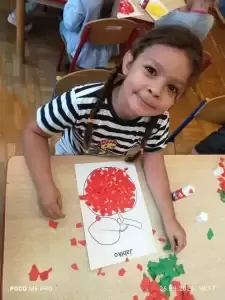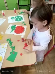 Nie zabrakło także części artystycznej. Mali uczestnicy tworzyli różnorodne prace plastyczne inspirowane jabłkiem – kolorowe rysunki, wyklejanki. Kreatywność dzieci jak zwykle nie miała granic, a sala przedszkolna wypełniła się barwnymi dekoracjami.