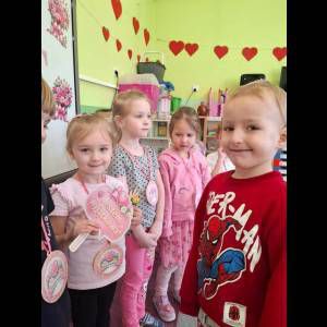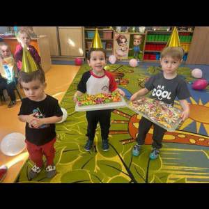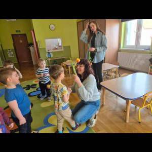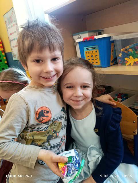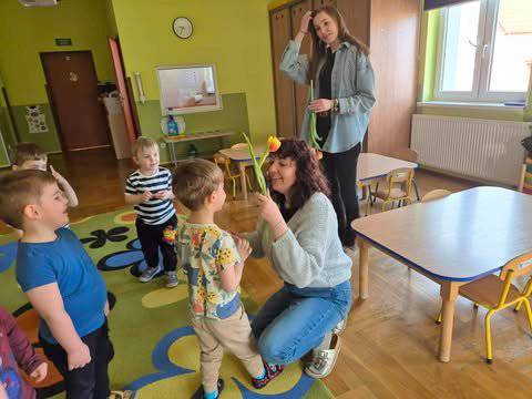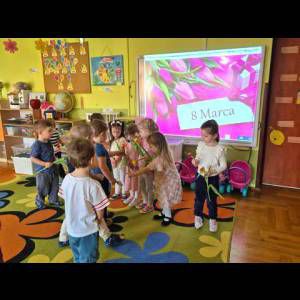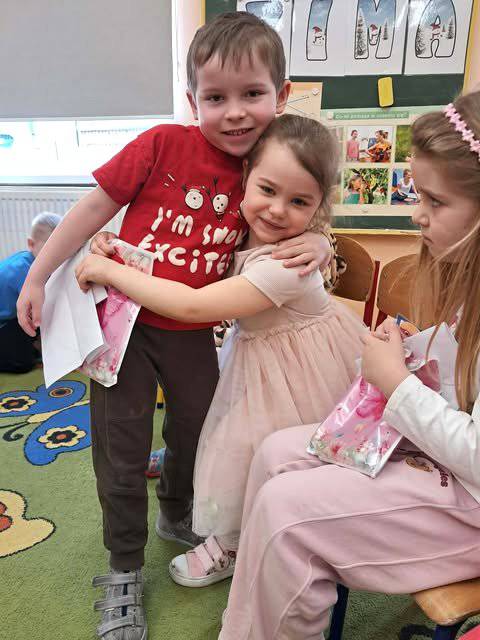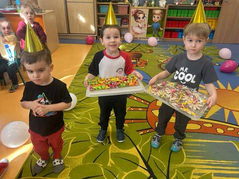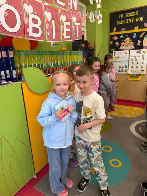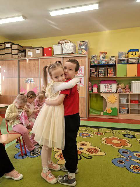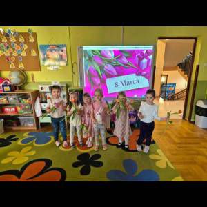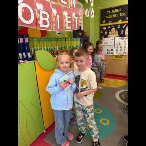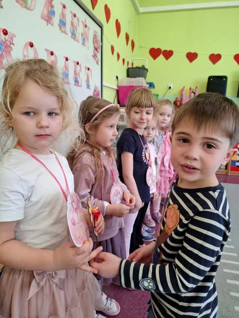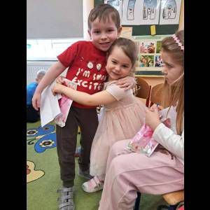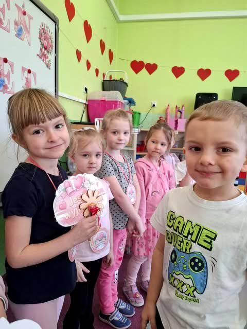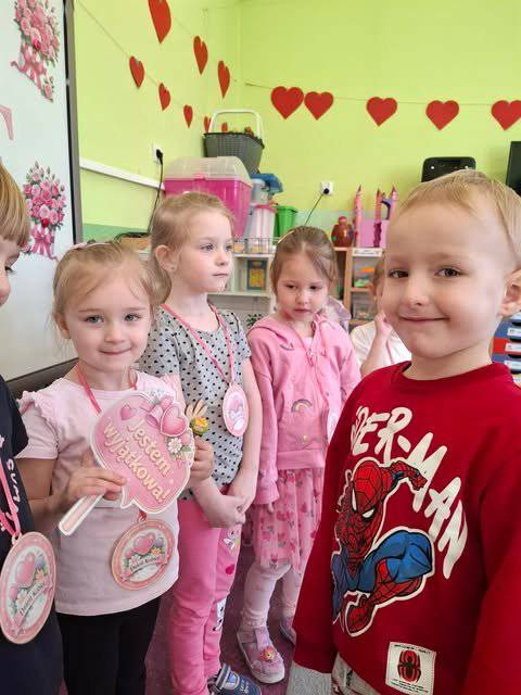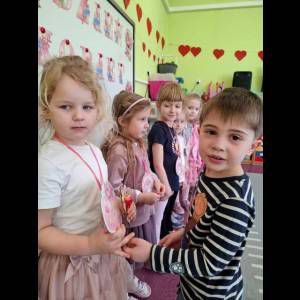 W tym pięknym dniu czas upłynął na specjalnych zabawach i aktywnościach, które wprowadziły dzieci w tematykę tego święta. Tradycyjnie chłopcy wręczali koleżankom, jak również swoim Paniom symboliczne kwiaty i laurki, które są wyrazem ich szacunku i miłości. To małe gesty, które uczą dzieci jak wyrażać wdzięczność.