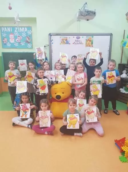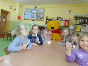 Dzień ten był doskonałą okazją do przypomnienia przygód Kubusia Puchatka. Dzieci rozwiązywały zagadki, słuchały przygód zwierząt ze Stumilowego Lasu, układały memory, miały możliwość degustowania słodkiego i zdrowego miodku - ulubionego przysmaku misia.