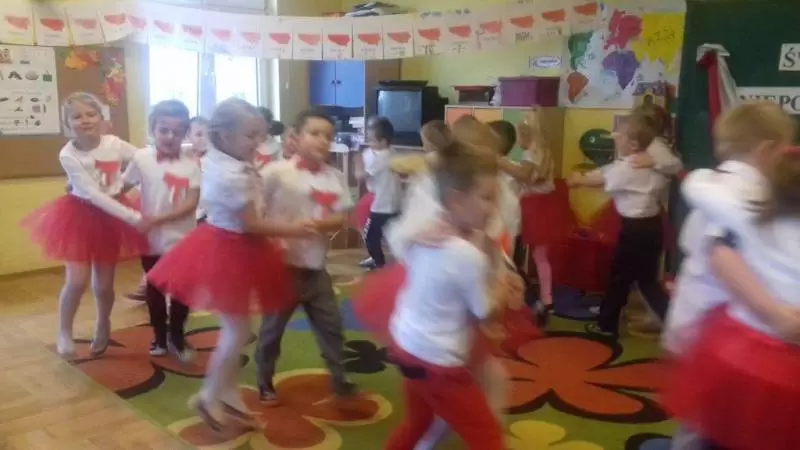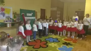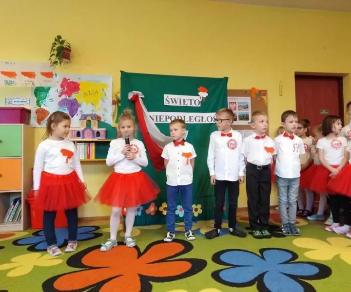 Dzieci z grupy „Misie” i „Rybki” 13 listopada w biało-czerwonych strojach, w podniosłej atmosferze zaprezentowały także swoje umiejętności wokalne, recytatorskie i taneczne w trakcie programu artystycznego przygotowanego właśnie z okazji tego ważnego dla wszystkich Polaków święta.