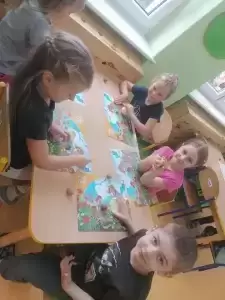 Nauka połączona z dobrą zabawą przypadła do gustu przedszkolakom, co widać na złączonych zdjęciach.