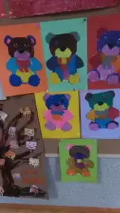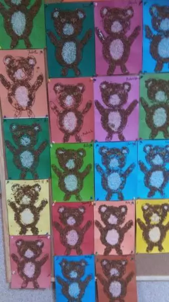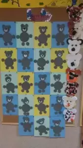 Cała zabawa zakończyła się umieszczeniem prac dziecięcych na wystawie przedszkolnej. Dzieci otrzymały także upominki w postaci "misiowych medali". Uroczystość przebiegała w bardzo miłej i sympatycznej atmosferze.