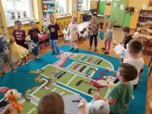 Ten dzień w przedszkolu pełen był uśmiechu oraz wspólnej zabawy, jednak najwięcej radości sprawił dzieciom sam fakt zaprezentowania swojego misia kolegom i możliwość zabawy z pluszakiem.