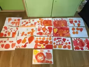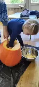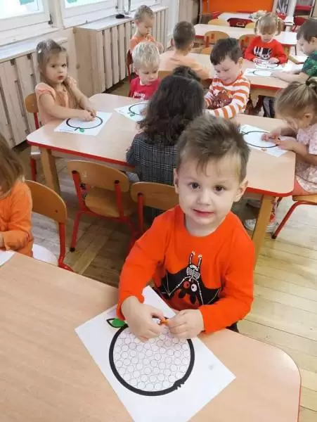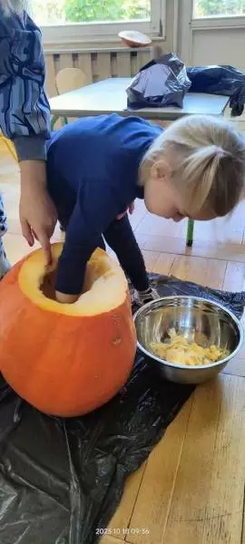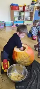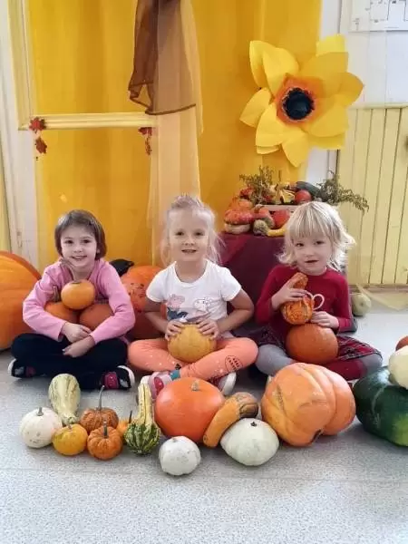 Dzieci tego dnia ubrane były w kolorze pomarańczowym. Nauczycielki zaprezentowały dzieciom pyszne owoce i warzywa w kolorze pomarańczowym. Królową koloru pomarańczowego została oczywiście dynia.
