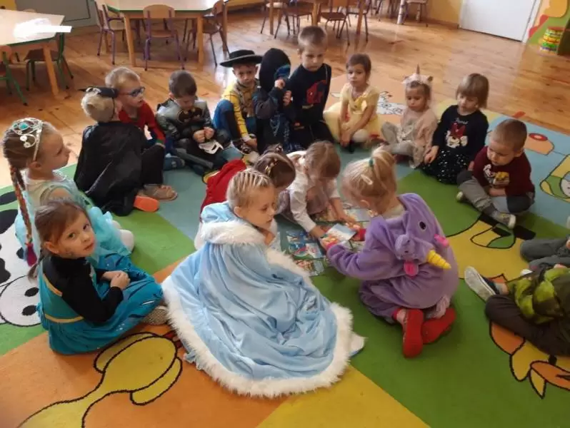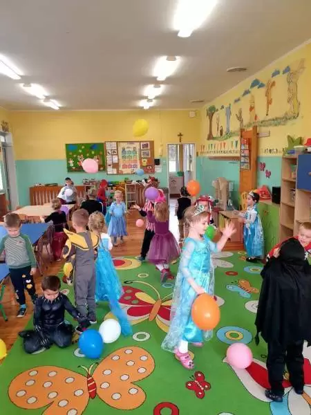 W tym wyjątkowym dniu, dzieci przyszły przebrane w przepiękne bajkowe postacie. Nie zabrakło więc: Księżniczek, Myszki Miki, Kubusia Puchatka, Boba Budowniczego, Królewny Śnieżki i wielu innych. Dzieci zaprezentowały swoje stroje podczas wspólnych zabaw na sali.