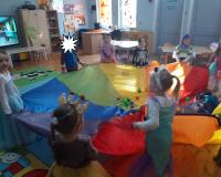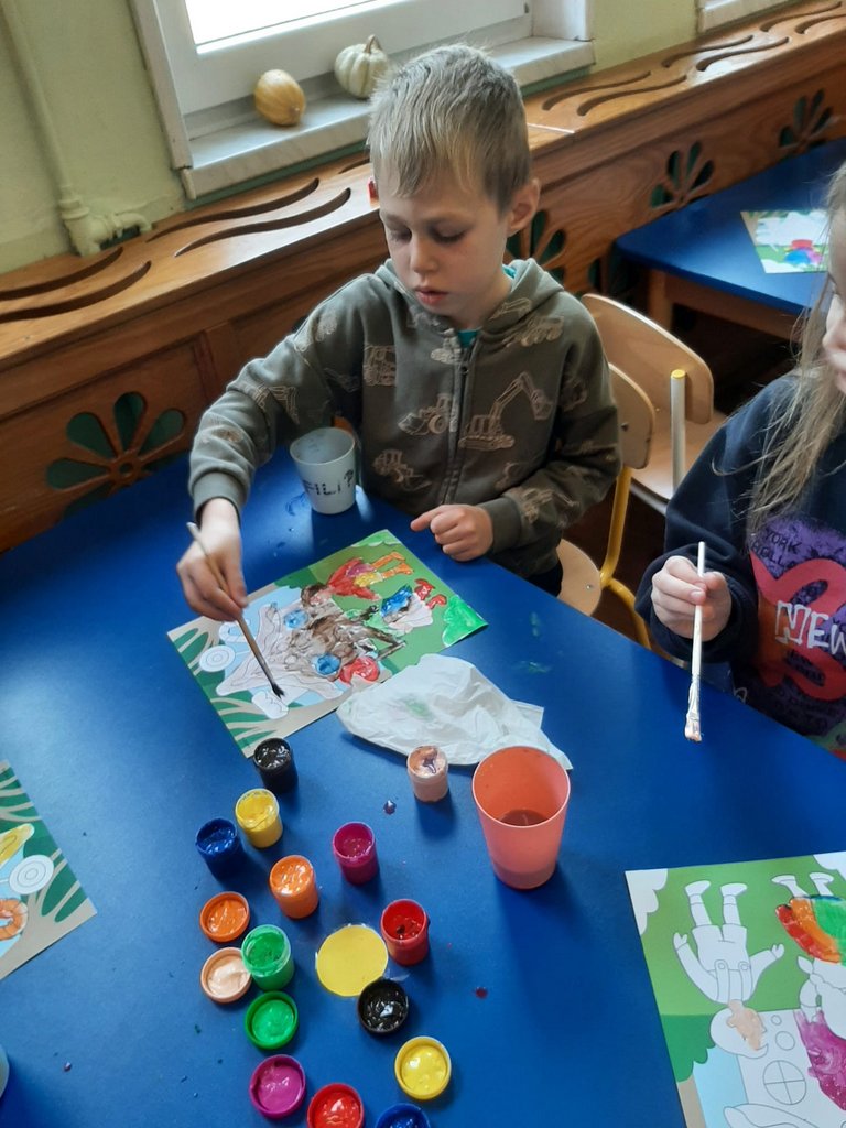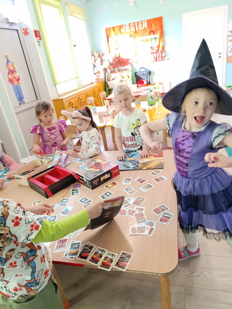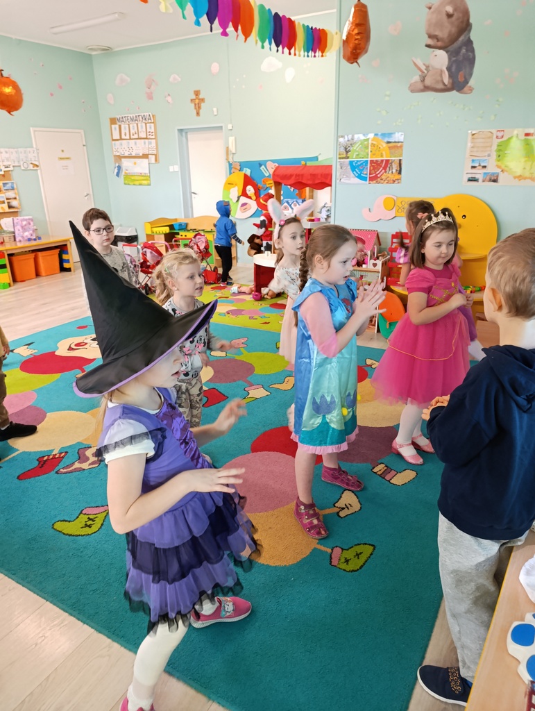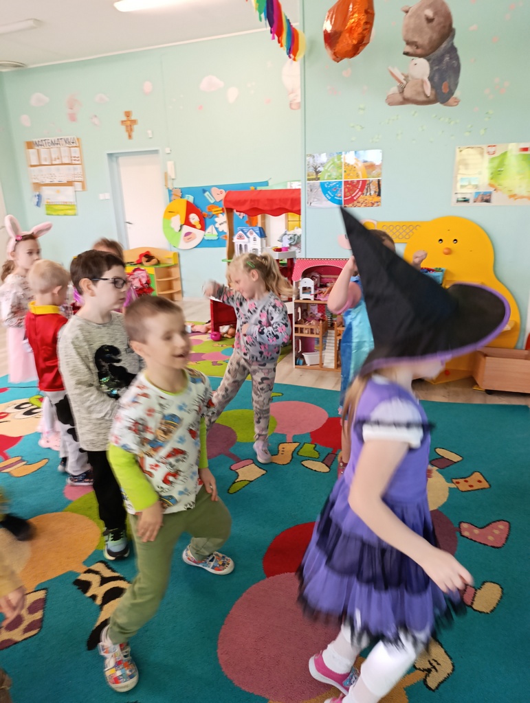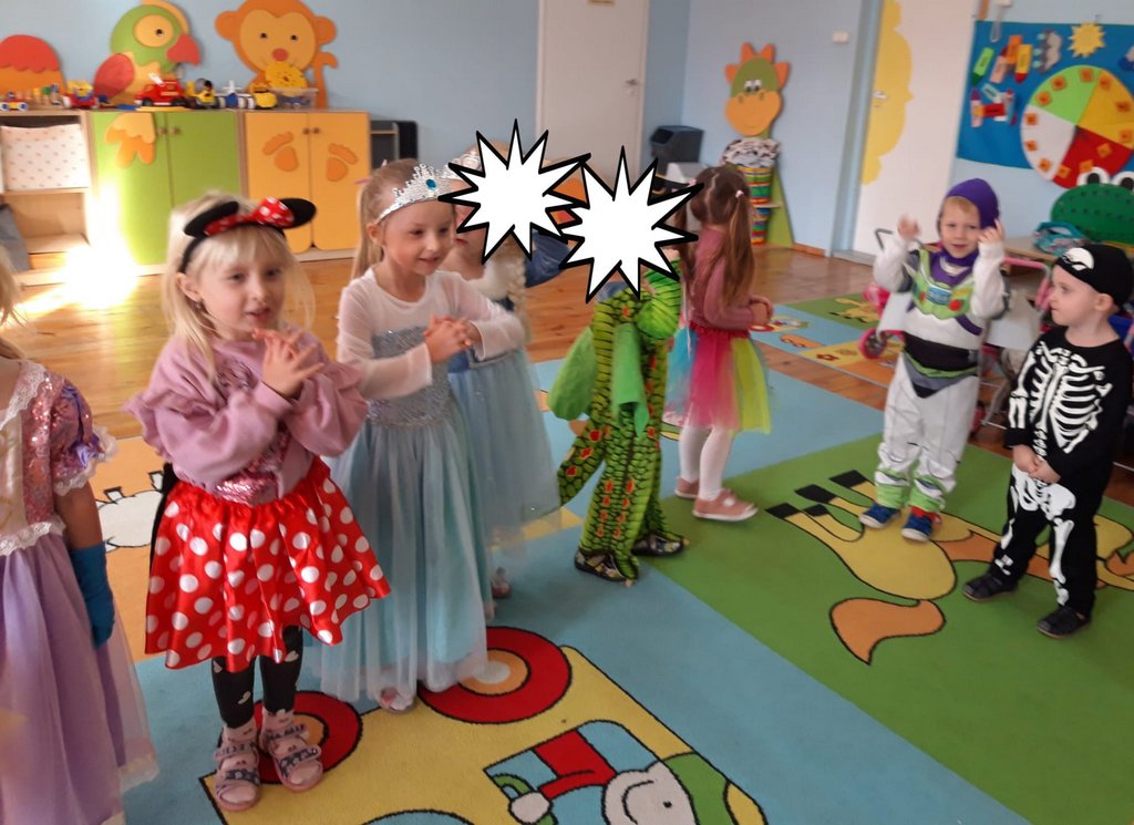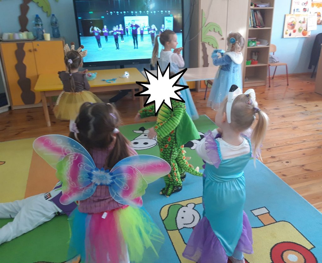 Tego dnia dzieci rozwiązywały zagadki, były muzyczne zgadywanki bajkowe, zabawy ruchowe oraz prezentacja dziecięcych bajkowych strojów. Dzieci tańczyły do muzyki z wielkich bajkowych, kinowych hitów, było wesoło, a dzień ten dostarczył nam wielu pozytywnych emocji i radości!