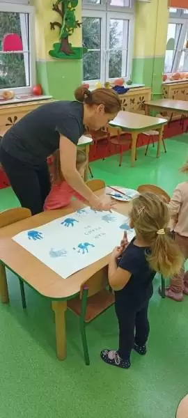 W związku z tym jak co roku w naszym przedszkolu obchodziliśmy Międzynarodowy Dzień Praw Dziecka. We wszystkich grupach zostały podjęte różnorodne działania. Przedszkolaki oglądały prezentację multimedialną pt. ,,Prawa dziecka – Twoje prawa”, poznały „Konwencję o Prawach Dziecka” i wypowiadały się na temat swoich praw. Przedszkolaki tańczyły przy piosence ,,Wszystkie dzieci nasze są”, odbijały umoczone w farbie dłonie na kartce z prawami dziecka, kolorowały obrazki przedstawiające dzieci z różnych stron świata, wykonywały plakat na temat ,,Praw dziecka”. Poprzez wyżej wspomniane działania przedszkolaki poznały przysługujące im prawa, a także obowiązki dorosłych wobec nich.