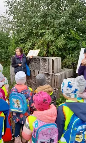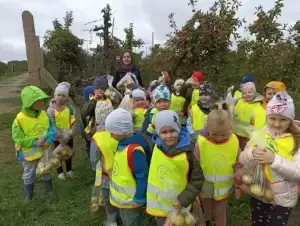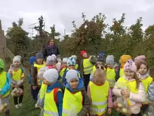 Dzieci zapoznały się z pracą sadownika, obejrzały różne odmiany jabłoni oraz dowiedziały się, gdzie mieszkają pożyteczne owady – pszczoły murarki – przyjaciółki każdego sadownika. Ciekawa lekcja przyrody wywarła na przedszkolakach wiele pozytywnych emocji.