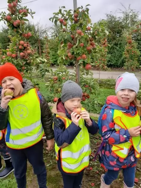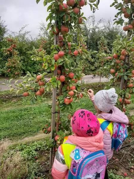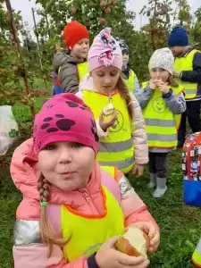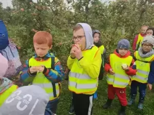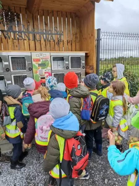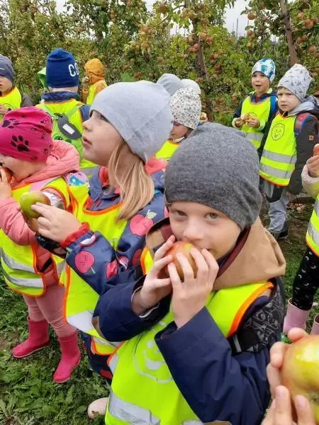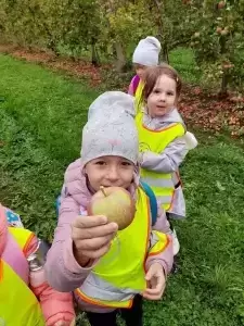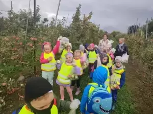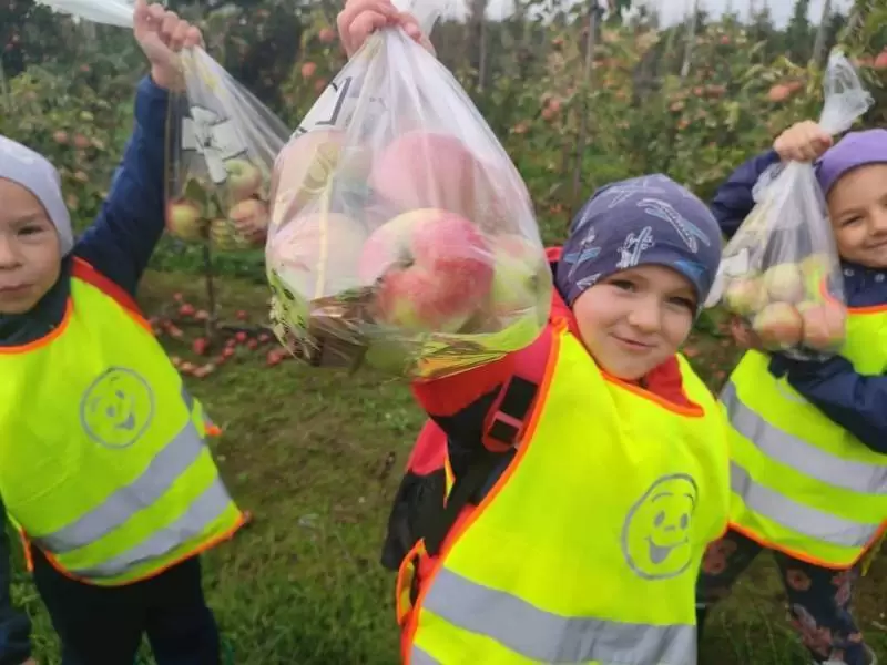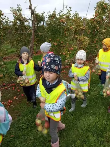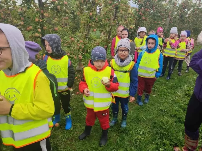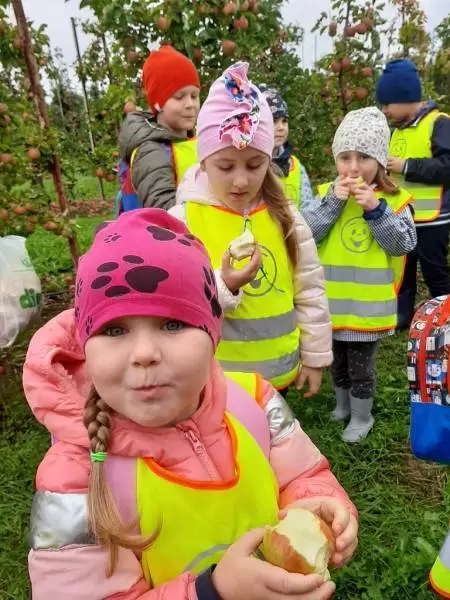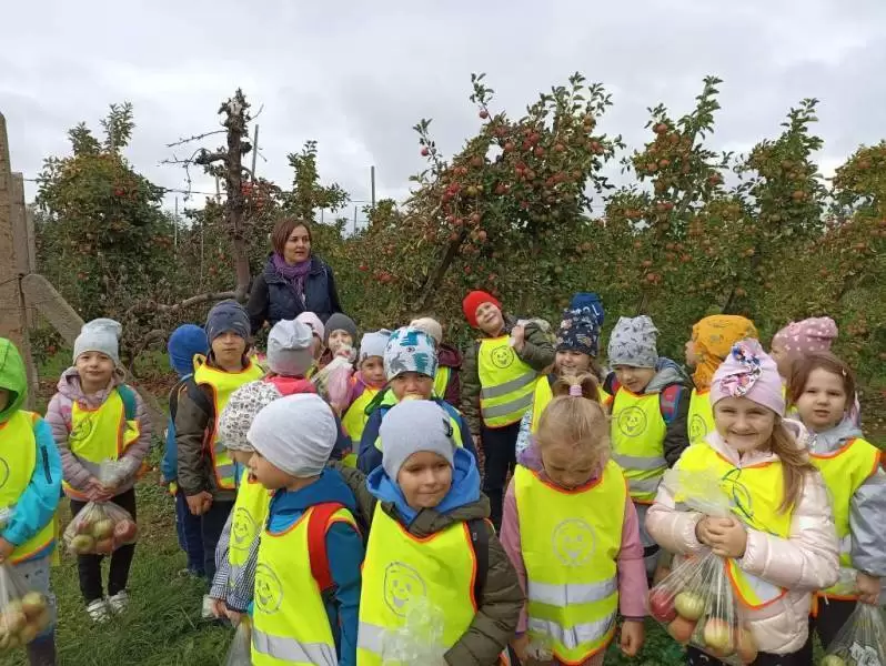 Dzieci zwiedziły sklep z owocami i warzywami oraz zobaczyły jak wygląda „Maciejomat”. Następnie samodzielnie zrywały jabłka, które w prezencie zabrały ze sobą do domu. Kolorowe jabłka, były najlepszą zachętą do spożywania witamin i uzmysłowienia dzieciom, jak ważne jest jedzenie owoców.