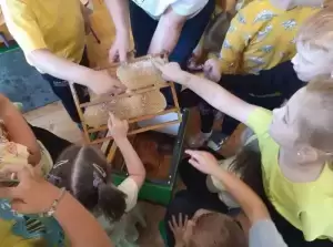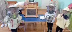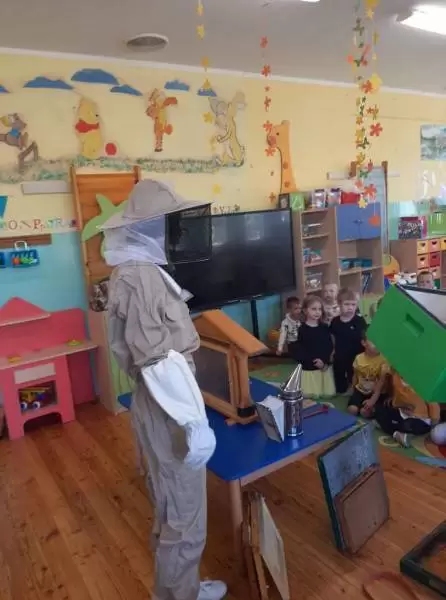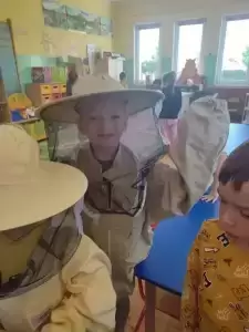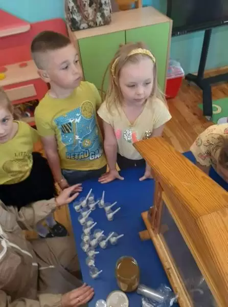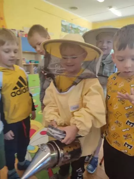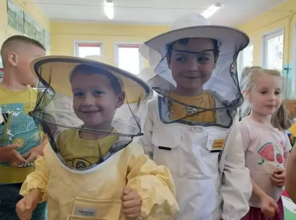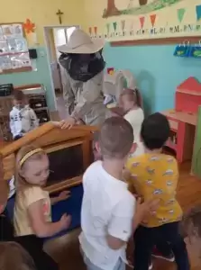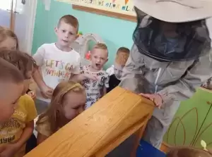 Dzieci miały okazję obejrzeć i przymierzyć strój pszczelarza, przekonać się do czego służą ramki w ulu i z czego są zrobione. Ale chyba najważniejsze było poczuć zapach i spróbować smaku
