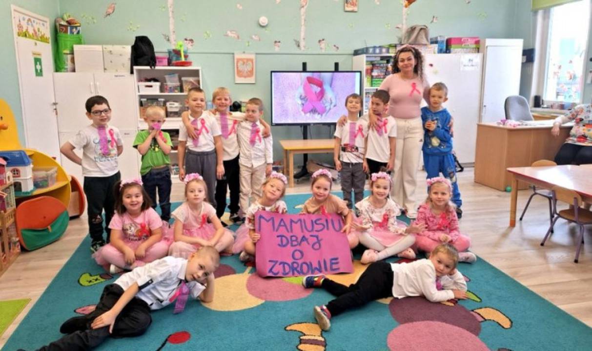 W Przedszkolu Publicznym w Ciechowie dzieci z grupy Smerfy wraz z wychowawcą Agnieszką Soboniak świętowały „Dzień Różowej Wstążki”. Włączenie się do tej pięknej akcji miało na celu zachęcić nasze mamy i babcie do badań.