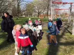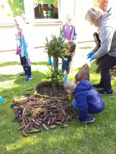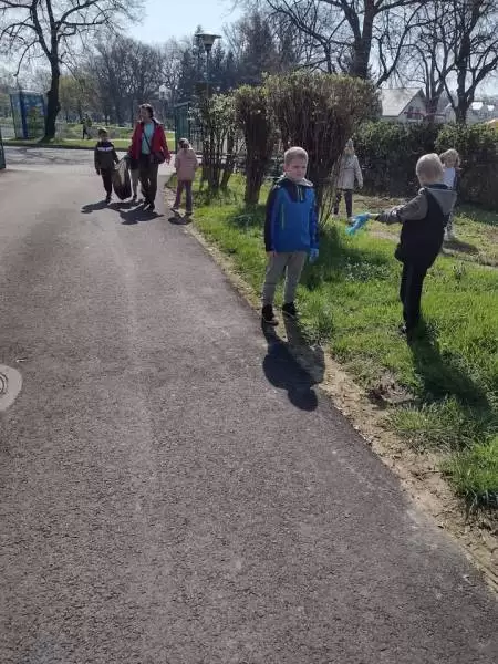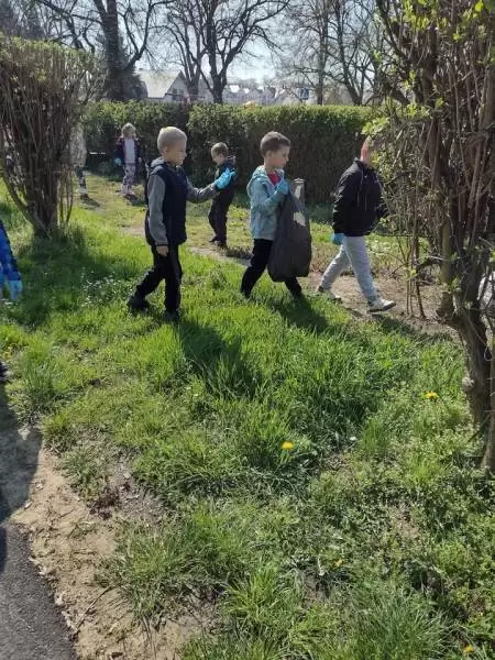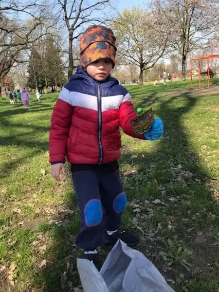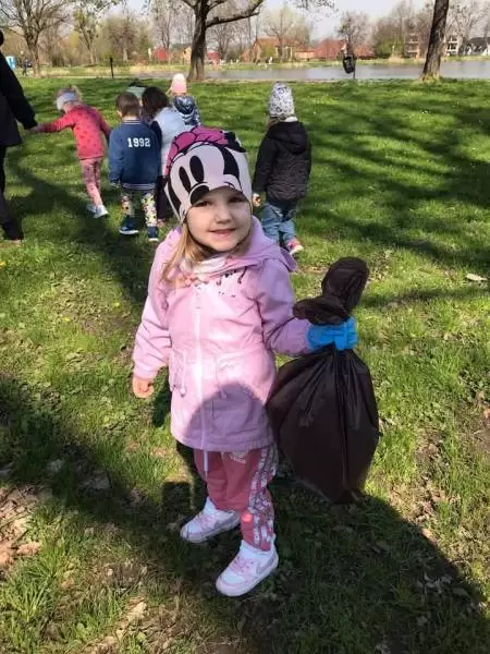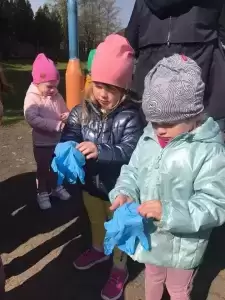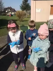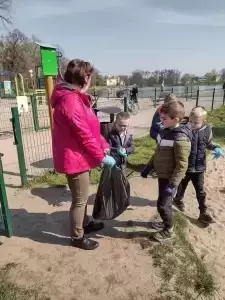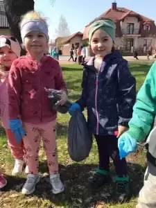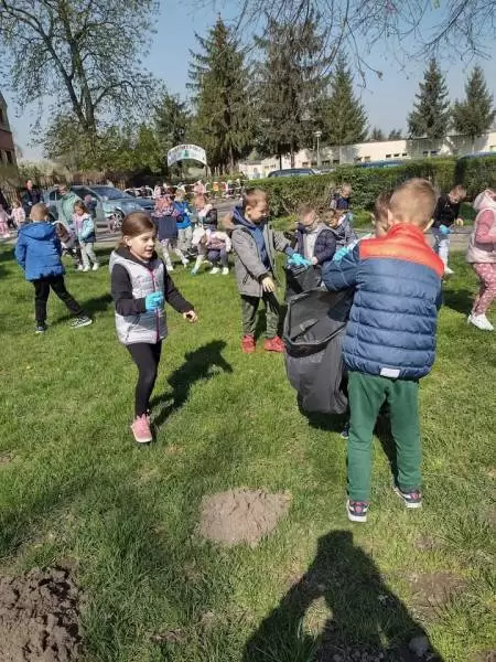 Przedszkolaki również w sposób praktyczny pokazały, że dbają o środowisko i pozbierały śmieci w okolicy budynku przedszkola oraz w pobliskim parku.