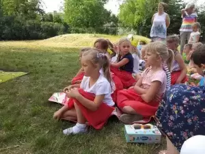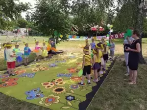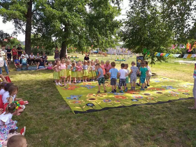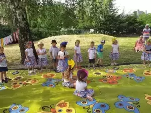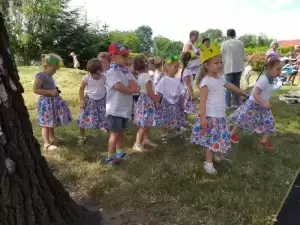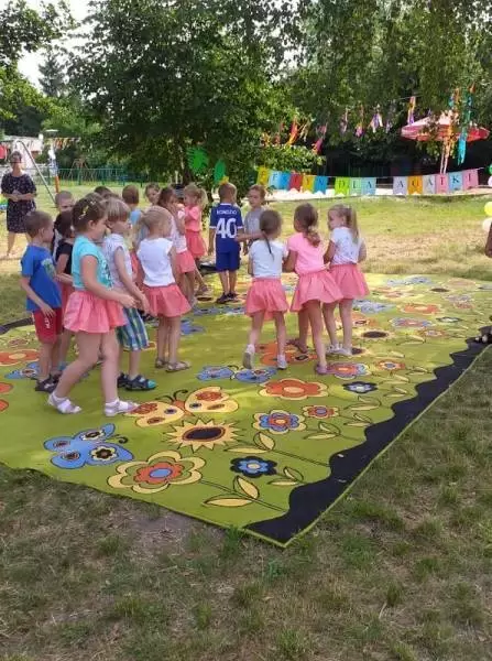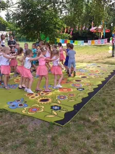 Dzieci robiły ogromne bańki mydlane, tańczyły ZUMBĘ, zjeżdżały na dmuchanej zjeżdżalni. Można było zakupić ciasta przygotowane przez rodziców z naszego przedszkola.