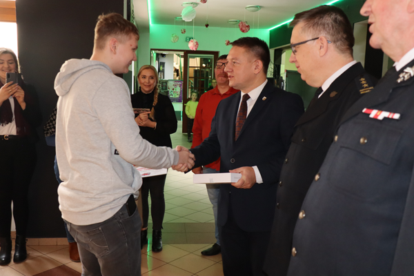 Prezes Kudryński podziękował także burmistrzowi Adamowi Rucińskiemu za ufundowanie nagród rzeczowych dla laureatów konkursu, a sam włodarz miał okazję uścisnąć dłoń zwycięzcom i wręczyć nagrody za 1. miejsce. Sześciu uczniów, którzy zajęli pierwsze trzy miejsca w dwóch kategoriach, zmierzy się teraz w finale powiatowym 24 marca.