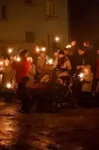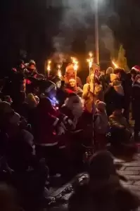 Dzieci, zajadając świąteczne pierniki, czekały na niego na placu osiedla Skaleń. Wołały go wierszykami i piosenkami, wymachując zimnymi ogniami. Święty Mikołaj, bo o nim mowa, z powodu braku śniegu przyjechał bryczką zaprzężoną w konie. Kiedy zbliżał się, było słychać głośne dzwonki. Pojawił się na drodze osiedlowej, oświetlonej przez mężczyzn, trzymających pochodnie. Wszyscy chcieli być pewni, że trafi we właściwe miejsce.