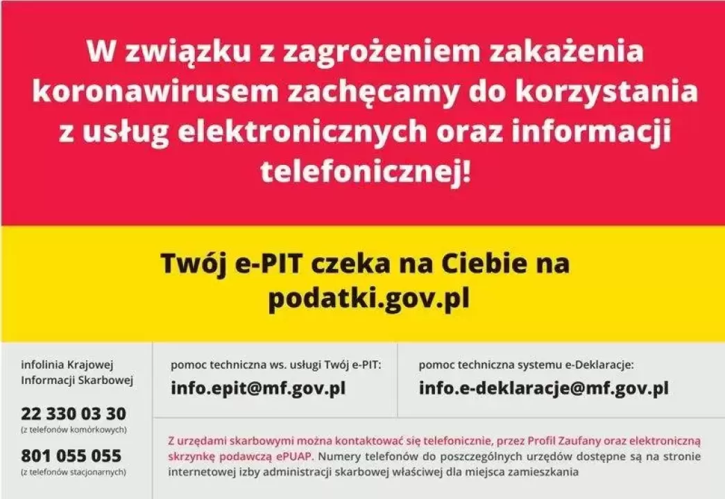 W związku z zagrożeniem zakażenia koronawirusem zachęcamy do korzystania z usług elektronicznych oraz informacji telefonicznej!