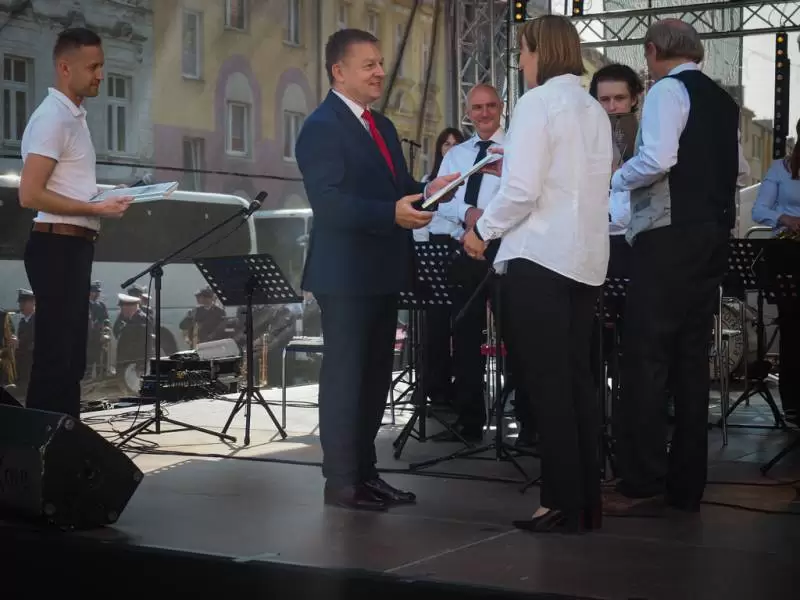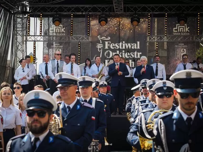 Festiwal otworzył uroczyście burmistrz Adam Ruciński. – Jest w orkiestrach dętych pewna siła, a w Środzie Śląskiej to już siła tradycji – powiedział ze sceny włodarz, który na koniec występu wręczył podziękowania dla członków orkiestry, którzy grają w niej nieprzerwanie od 10 lat, zaś wraz z przewodniczącym Rady Miejskiej Jerzym Krycińskim i sekretarz Gminy Judytą Partyką-Basą pogratulował kapelmistrzowi Średzkiej Orkiestry Dętej Kazimierzowi Puchalskiemu medalu „Zasłużony dla Gminy Środa Śląska”. Włodarz podkreślił wieloletni wkład kapelmistrza i całej orkiestry w kulturę Ziemi Średzkiej, która już od 10 lat dba o oprawę artystyczną ważnych gminnych uroczystości i promuje Gminę Środa Śląska na arenie ogólnopolskiej.