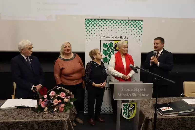Pani Jadwidze wyróżnienia pogratulowały obecna prezes Klubu Seniora Maria Pachońska i wiceprezes Róża Błach, a na koniec głos zabrał przewodniczący Rady Miejskiej. - Nie możemy zapomnieć o ważnej roli poprzedniego burmistrza Środy Śląskiej Bogusława Krasuckiego, za którego kadencji powstał Klub Seniora i dzięki jego przychylności mógł stale się rozwijać – podkreślił Jerzy Kryciński.