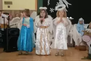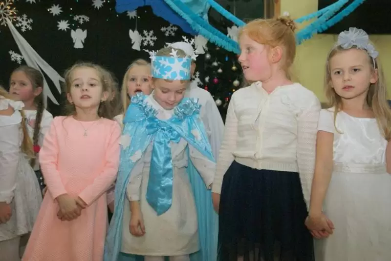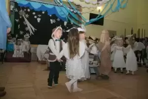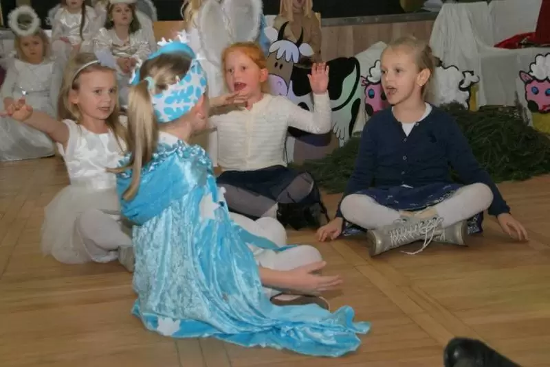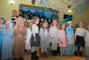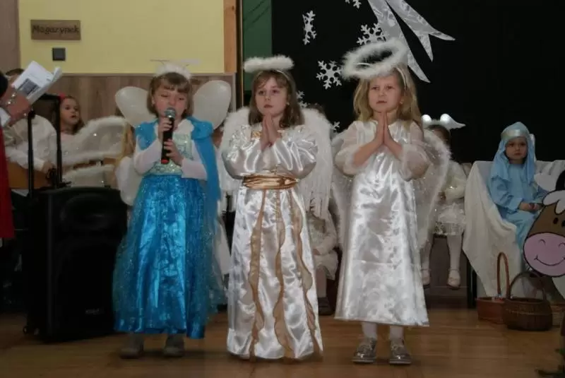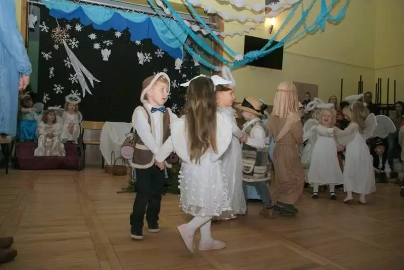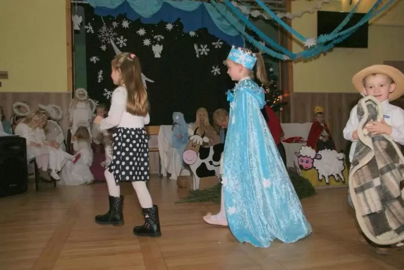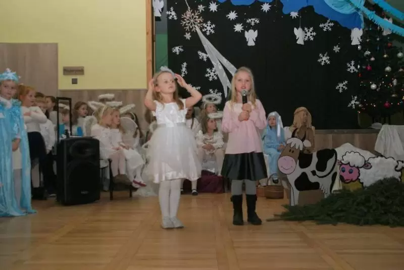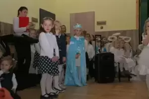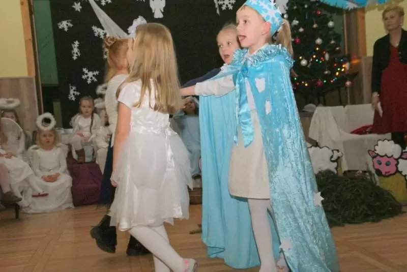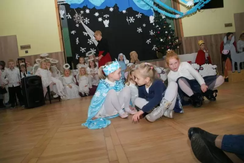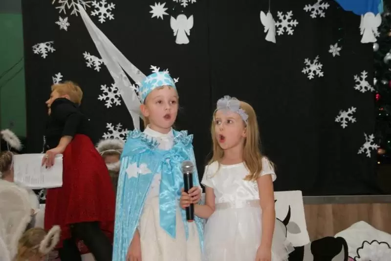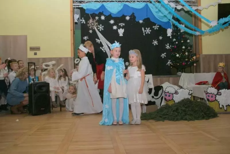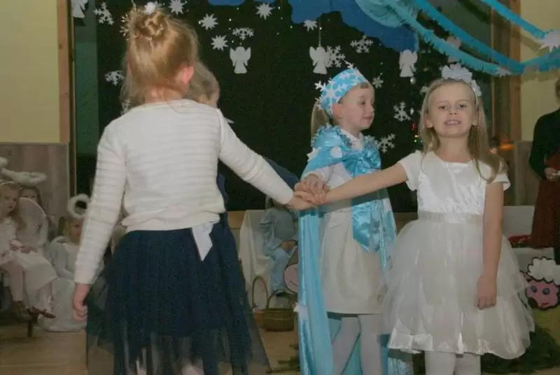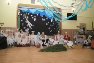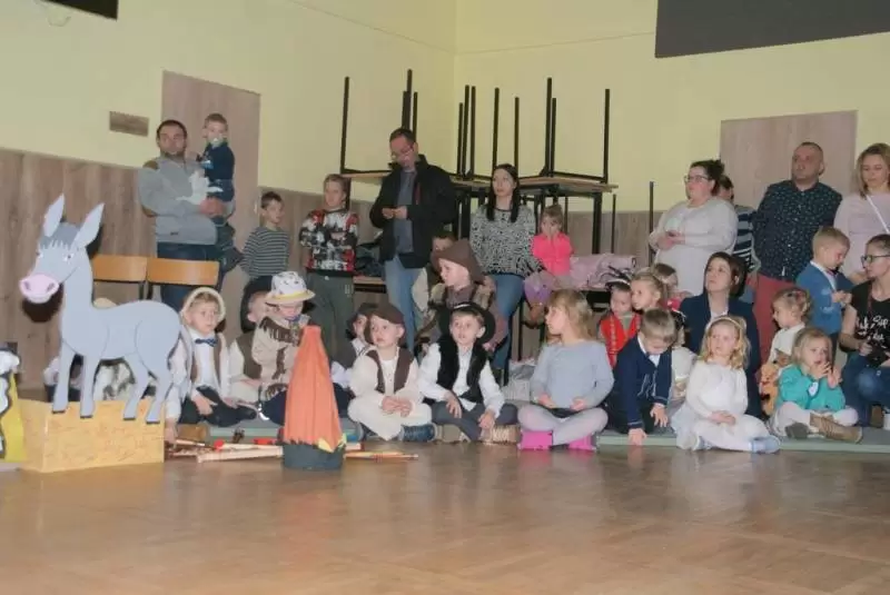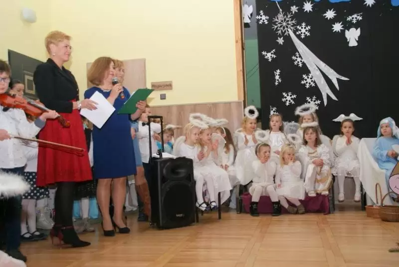 Nauczycielki oraz rodzice przygotowali stroje, a także dekoracje. Dzieci bardzo starannie przygotowały się do swoich ról. Było też wspólne śpiewanie kolęd. Atmosfera świąteczna udzieliła się wszystkim obecnym, a dzieci w podziękowaniu za występ otrzymały gratulacje od samego pana burmistrza, a także słodką niespodziankę.