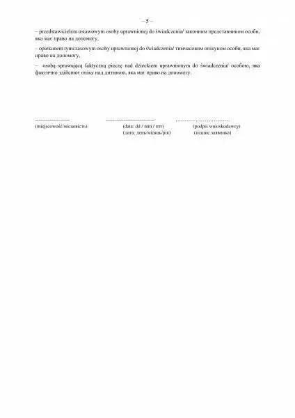 Wniosek składa osoba uprawniona, jej przedstawiciel ustawowy, opiekun tymczasowy albo osoba sprawująca faktyczną pieczę nad dzieckiem.