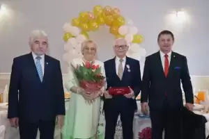 Jubilaci odebrali list gratulacyjny i medale od prezydenta RP za długoletnie pożycie małżeńskie, które wręczyli im - burmistrz Środy Śląskiej Adam Ruciński i przewodniczący Rady Miejskiej w Środzie Śląskiej Jerzy Kryciński.
