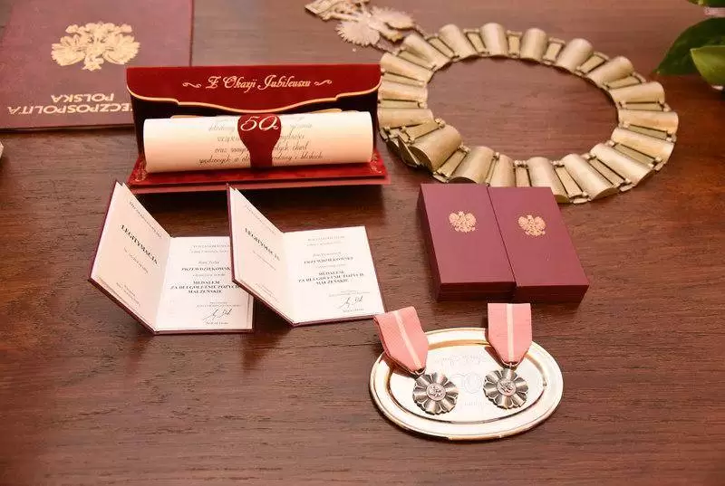 Dlatego też ta szczególna rocznica wiąże się z uhonorowaniem małżonków listem gratulacyjnym i medalami za długoletnie pożycie, przyznawanymi przez prezydenta RP. Takie właśnie odznaczenia 11 stycznia br. w średzkim Urzędzie Stanu Cywilnego odebrali Państwo Zofia i Franciszek Przewdziękowscy ze Środy Śląskiej.