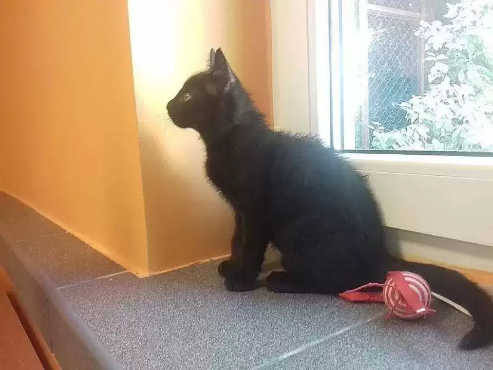 Do tej pory biegał i bawił się z kolegami, ale pozostałe kotki zostały już adoptowane i teraz nie ma się z kim bawić.