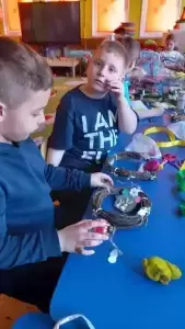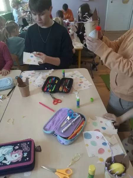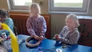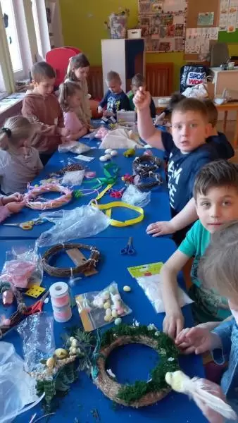W przygotowaniach do kiermaszu brali udział także Wolontariusze ze Szkoły Podstawowej w Ciechowie, którzy pomagali w ozdabianiu części dekoracji.