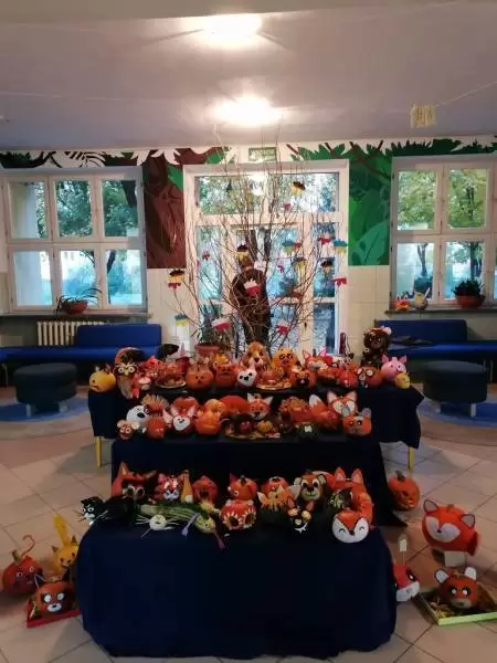 W środę w klasach i na korytarzach dominowały barwy "złotej polskiej jesieni": żółta, pomarańczowa i czerwona. Dzieci z klas I - III wzięły udział w "Dyniowych Zawodach Sportowych", przygotowanych przez nauczycielki edukacji wczesnoszkolnej.