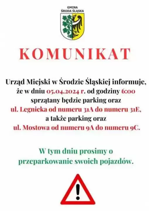 Komunikat dla Mieszkańców ul. Legnickiej i Mostowej w Środzie Śląskiej