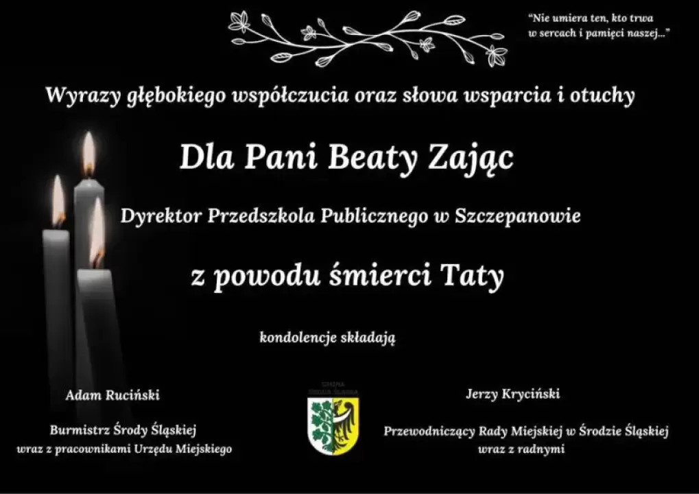 Kondolencje dla Pani Beaty Zając