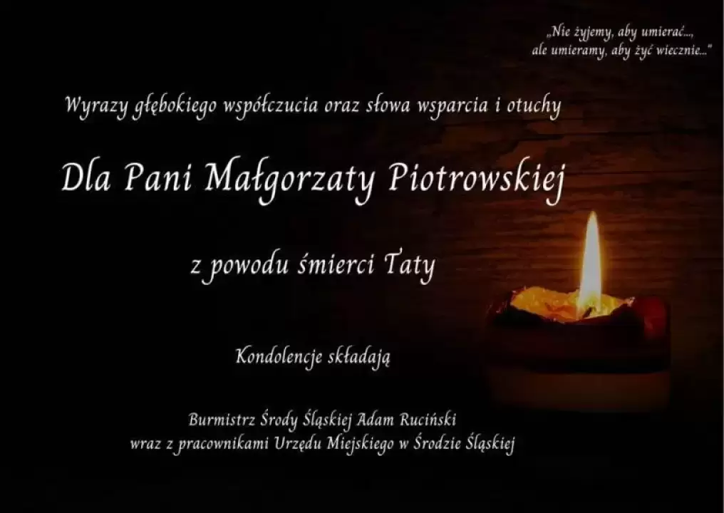 Kondolencje dla Pani Małgorzaty Piotrowskiej