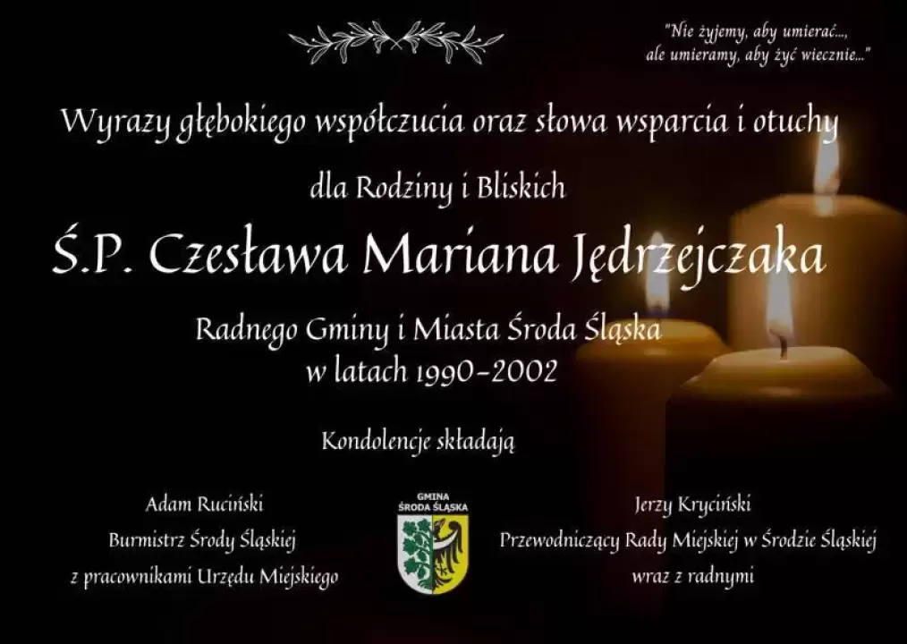 Kondolencje dla Rodziny i Bliskich śp. Czesława Mariana Jędrzejczaka