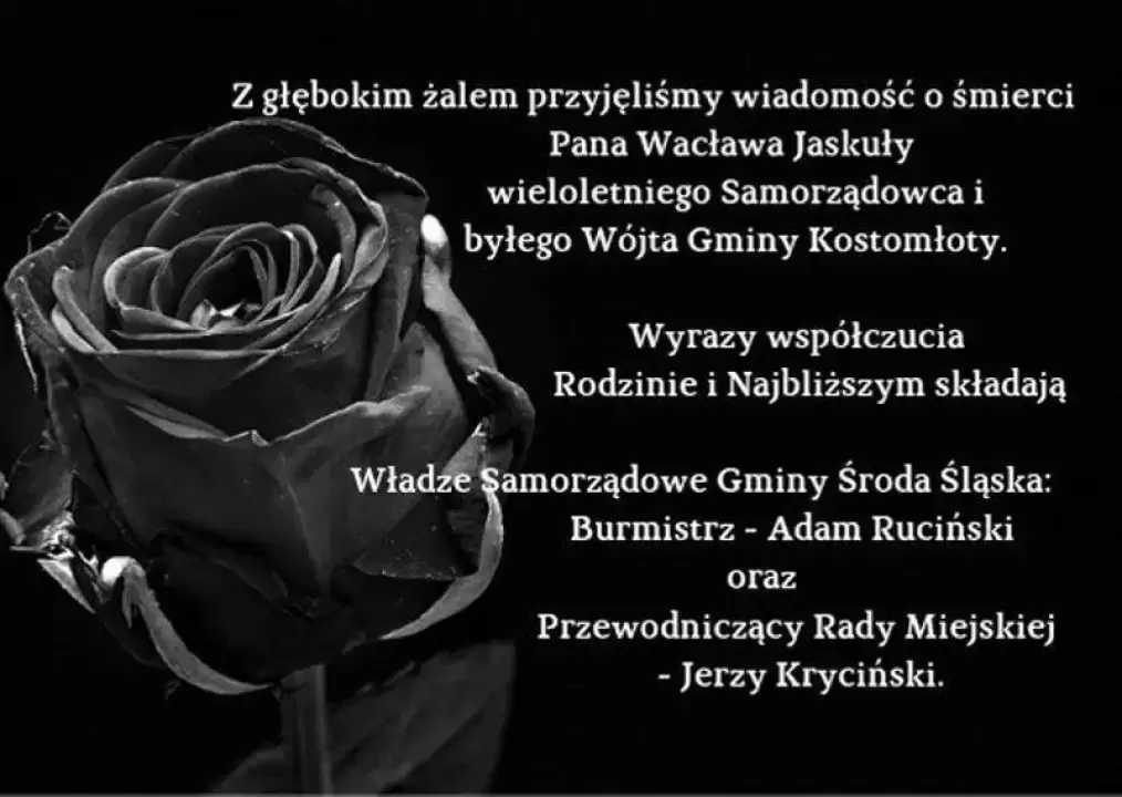 Z głębokim żalem przyjęliśmy wiadomość o śmierci Pana Wacława Jaskuły, wieloletniego Samorządowca i byłego Wójta Gminy Kostomłoty.